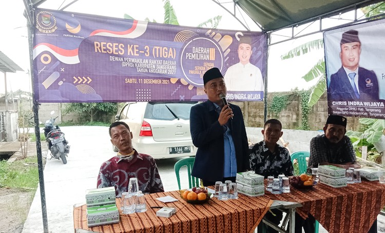 TANGERANG-Anggota Dewan Perwakilan Rakyat Daerah (DPRD) Kabupaten Tangerang, Chris Indra Wijaya menggelar reses dengan  konstituennya di Perumahan Sepatan Residen RT 07 RW 03, Desa Kayu Bongkok, Kecamatan Sepatan, Kabupaten Tangerang, Sabtu (11/12/2021).